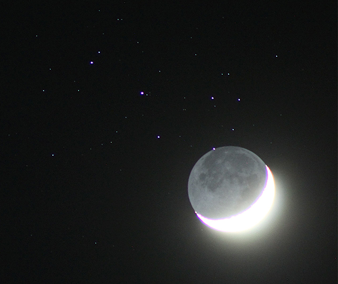The Moon occulting the Pleiades on 1 April 2025. Credit: David Blanchflower