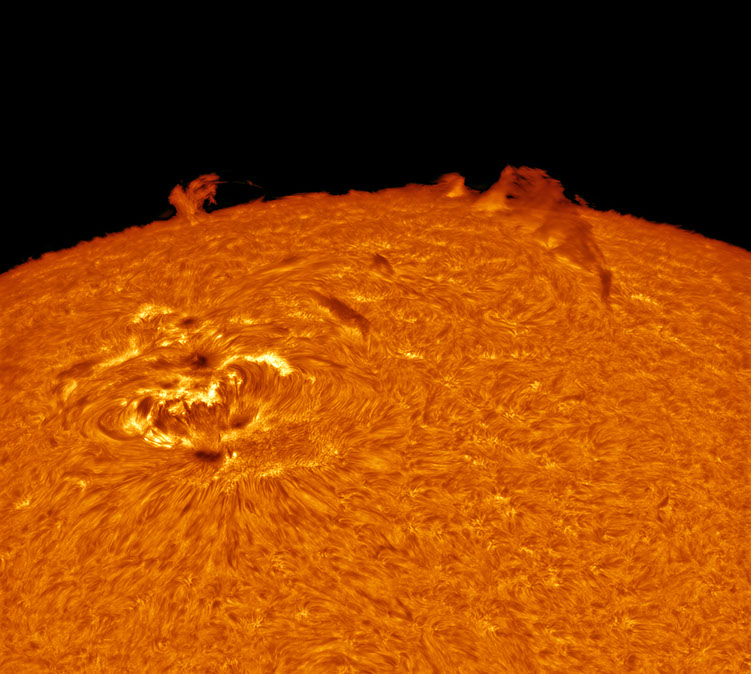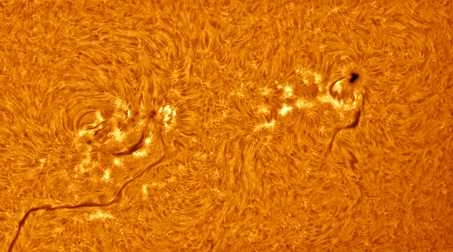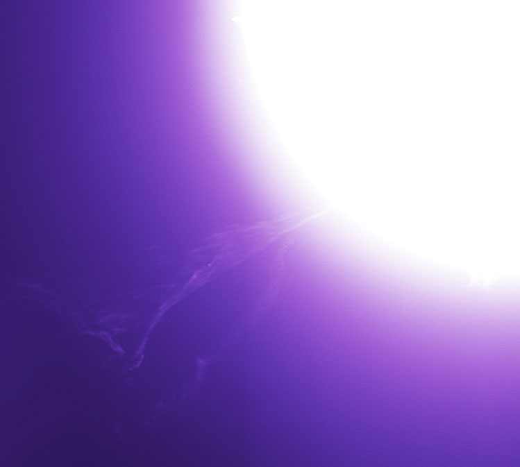 ‘Calcium K’ refers to a very specific wavelength of violent light emitted by calcium ions in extreme environments such as the Sun’s atmosphere. By imaging the Sun only in the very narrow colour range astronomers can isolate evidence of extreme events, such as this colossal prominence rising off the solar surface. To the photographer’s knowledge this is the longest prominence ever imaged by anyone on Earth and one of only a handful of Calcium K solar prominences ever captured.