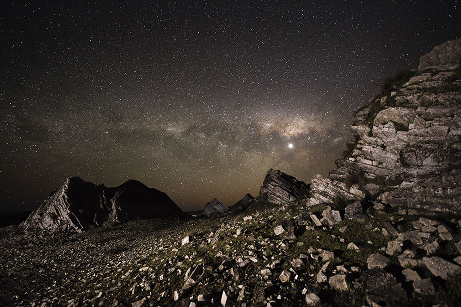 Rock formations in the Wairarapa district of New Zealand create a stark foreground and contrast to the dusty clouds dancing across the Milky Way. No light pollution and a clear, crisp night afforded the photographer a fantastic opportunity for this superb image.