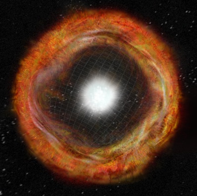 Representation of a core-collapse supernova explosion expelling a nearly-spherical debris shell. Image: Bill Saxton, NRAO/AUI/NSF.